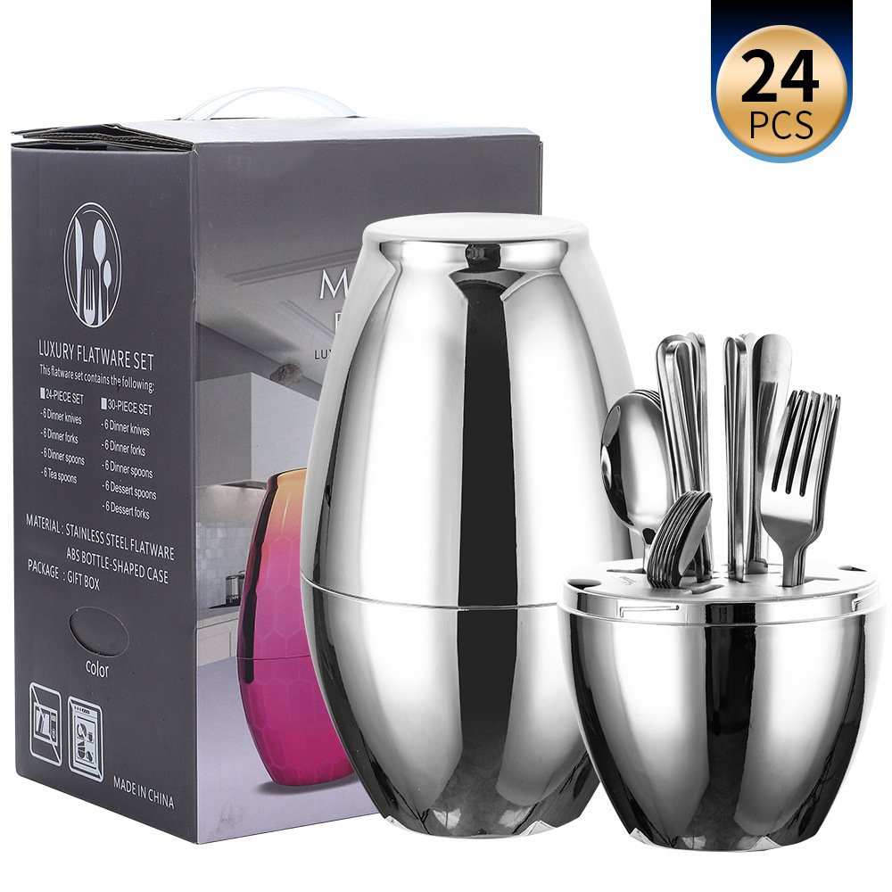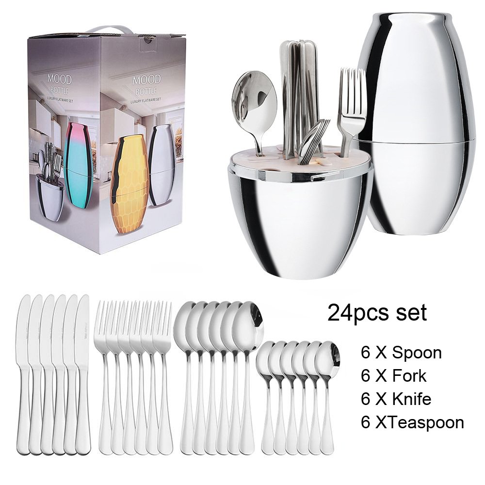 • Contains 6 each Dinner Spoons, Dinner Folks, Dinner Knives, and Dessert Spoons.