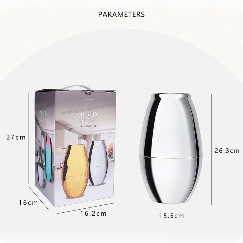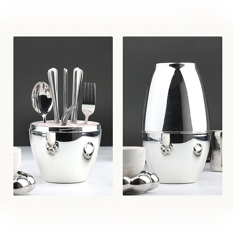 Your cutlery comes neatly organized in a stylish cutlery holder, which doubles as a practical storage container. This ensures your utensils are easily accessible, while also keeping your kitchen counter tidy.